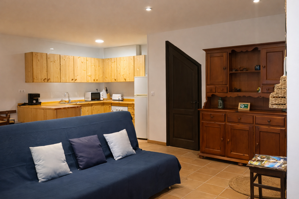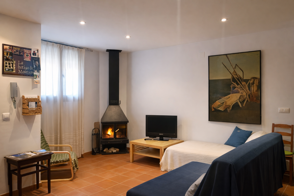L’estudi situat a prop del castell de Montsonís és ideal per descansar al costat de la llar de foc. Disposa de les condicions òptimes per a una estada tranquil•la i romàntica, fer turisme rural i conèixer la zona. L’estudi és distribueix en una sola planta, amb cuina menjador amb forn, nevera, microones i cafetera. Disposen d'una habitació de matrimoni amb ventilador al sostre i bany. Es pot ampliar la seva capacitat amb 3 places extra, el sofà llit del menjador i un llit supletori individual.